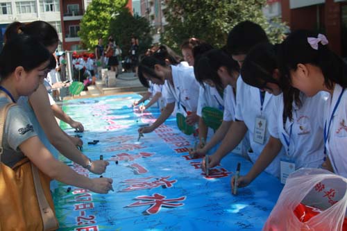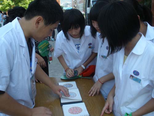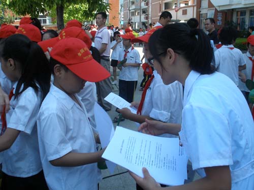 啟動儀式結(jié)束后,志愿者們通過科普展板的講解和分發(fā)宣傳單,向閩侯一中、閩侯實驗小學(xué)曇石分校的廣大師生宣傳“保護水資源,節(jié)約用水”、“營養(yǎng)與膳食” 的有關(guān)知識,并為他們提供血壓測定、肥胖指數(shù)測定、色盲色弱檢查、營養(yǎng)咨詢等服務(wù)。