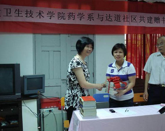 7月9日,藥學(xué)系與臺(tái)江區(qū)洋中街道達(dá)道社區(qū)舉行“愛心書屋”捐贈(zèng)儀式,捐贈(zèng)圖書900多冊(cè)及書款600多元,福州新聞網(wǎng)等媒體到現(xiàn)場(chǎng)進(jìn)行報(bào)道;護(hù)理系深入臺(tái)江區(qū)洋中街道玉樹社區(qū),開展血壓測(cè)量、六步洗手法教授、夏季多發(fā)病防治宣傳、營養(yǎng)健康咨詢等活動(dòng),并進(jìn)行護(hù)士禮儀表演;臨床醫(yī)學(xué)系到臺(tái)江區(qū)洋中街道鋪前社區(qū),向社區(qū)居民介紹了義診活動(dòng)的內(nèi)容,包括測(cè)血壓、測(cè)血型、色盲檢查、健康知識(shí)普及、問卷調(diào)查等活動(dòng),獲得了廣大居民的一致好評(píng)。