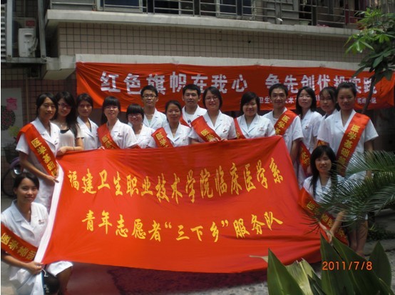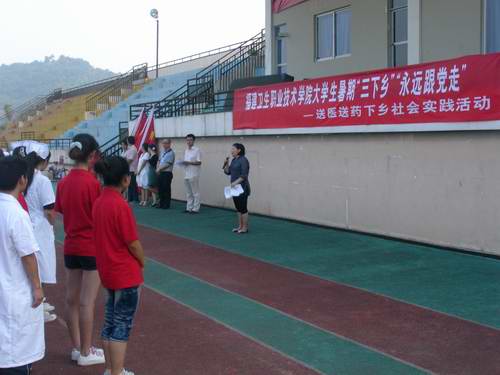 7月8日,我院舉行2011年“三下鄉(xiāng)”暑期社會(huì)實(shí)踐活動(dòng)啟動(dòng)儀式,魏立娜副院長為我校赴龍巖武平實(shí)踐團(tuán)授旗,團(tuán)委邱滾忠書記為藥學(xué)系、護(hù)理系、醫(yī)學(xué)技術(shù)系和臨床醫(yī)學(xué)系實(shí)踐團(tuán)隊(duì)授旗,標(biāo)志著我院2011年暑期社會(huì)實(shí)踐活動(dòng)全面開展。