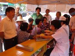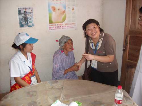 次日早晨,實(shí)踐團(tuán)隊(duì)按預(yù)定計(jì)劃兵分兩路,魏立娜副院長帶領(lǐng)一部分隊(duì)員,在武平團(tuán)縣委領(lǐng)導(dǎo)的陪同下,深入武平縣最北部的大禾鄉(xiāng),考察基層的衛(wèi)生資源狀況,與大禾鄉(xiāng)衛(wèi)生院負(fù)責(zé)人座談并贈送藥品,并到貧困烈屬家中,進(jìn)行體檢義診。另一部分隊(duì)員在院團(tuán)委老師的帶領(lǐng)下,在武平縣中心城區(qū)開展醫(yī)保宣傳、獻(xiàn)血控?zé)熜麄?、體檢義診贈藥等活動,前來咨詢的群眾絡(luò)繹不絕,現(xiàn)場氣氛熱烈。上午的活動結(jié)束后,大家經(jīng)過短暫休息,又馬不停蹄的投入到下午的工作中。魏副院長等來到武平團(tuán)縣委辦公室,同團(tuán)縣委、縣衛(wèi)生局領(lǐng)導(dǎo)就基層衛(wèi)生人才培養(yǎng),加強(qiáng)雙方交流合作等事宜進(jìn)行了座談,聽取了我院掛職干部葉文偉老師半年以來的工作匯報(bào),其后進(jìn)行了簡短的電腦贈送儀式。另一部分隊(duì)員來到武平縣光榮院,為光榮院里的老人義務(wù)體檢診療,贈送藥品。