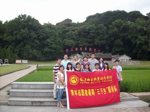 為貫徹落實(shí)胡錦濤總書記向青年學(xué)生發(fā)出的"向?qū)嵺`學(xué)習(xí)、向人民群眾學(xué)習(xí)"的號召,引導(dǎo)廣大青年學(xué)生以慶祝中國共產(chǎn)黨成立90周年為契機(jī),在實(shí)踐中學(xué)黨史、知黨情,進(jìn)一步堅(jiān)定跟黨走中國特色社會主義道路的理想信念,努力為“十二五”開局建設(shè)作出積極貢獻(xiàn)。7月11日-14日,福建衛(wèi)生職業(yè)技術(shù)學(xué)院“三下鄉(xiāng)”暑期社會實(shí)踐團(tuán)隊(duì)來到龍巖市武平縣,展開為期三天的社會實(shí)踐活動。
