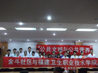 5月18日,15名師生組成的科普志愿者參加閩侯縣“2011年科技?人才活動(dòng)周”啟動(dòng)儀式,圍繞著“營(yíng)養(yǎng)與健康同行”的主題開展了血壓測(cè)量、營(yíng)養(yǎng)咨詢、色盲色弱篩查、營(yíng)養(yǎng)、健康知識(shí)宣傳講解等活動(dòng),吸引了眾多居民,得到廣泛好評(píng);5月21日,在臺(tái)江區(qū)金斗社區(qū)舉辦了一場(chǎng)“飲食與健康”的科普講座,受到社區(qū)居民的熱烈歡迎。此外,活動(dòng)期間,我院通過(guò)開通專題網(wǎng)站,舉辦校內(nèi)“食品安全教育”、“營(yíng)養(yǎng)奧秘的探索”講座,到福州財(cái)金職業(yè)中專學(xué)校舉辦青春期性教育講座等方式進(jìn)行科普宣傳。(醫(yī)學(xué)基礎(chǔ)部 臨床醫(yī)學(xué)系)