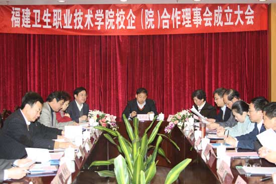2010年12月28日下午,福建衛(wèi)生職業(yè)技術(shù)學(xué)院校企(院)合作理事會成立大會暨理事會第一次會議在閩江飯店舉行,省衛(wèi)生廳、省教育廳、閩侯縣政府、學(xué)院、有關(guān)醫(yī)療機(jī)構(gòu)、醫(yī)藥企事業(yè)單位、科研院所負(fù)責(zé)人20余人參加會議。