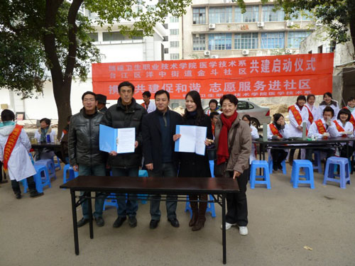 2011年1月8日上午,我院醫(yī)學(xué)技術(shù)系與臺(tái)江洋中街道金斗社區(qū),在市工人文化宮門(mén)前開(kāi)展“共建共創(chuàng)文明社區(qū)活動(dòng)啟動(dòng)儀式暨健康科普知識(shí)宣傳教育”活動(dòng),醫(yī)學(xué)技術(shù)系馬少寧主任、洪聿榮副書(shū)記、郭禮堅(jiān)副主任及洋中街道曾軍副主任、金斗社區(qū)陳艷主任出席了本次活動(dòng)。醫(yī)學(xué)技術(shù)系的專(zhuān)業(yè)教師、學(xué)生等20多位志愿者為社區(qū)居民提供血型鑒定、血壓測(cè)量、營(yíng)養(yǎng)咨詢(xún)、常見(jiàn)寄生蟲(chóng)介紹及寄生蟲(chóng)病癥防治、艾滋病及傳播途徑介紹等服務(wù),以及放射科防護(hù)知識(shí)普及、無(wú)償獻(xiàn)血普及等宣傳教育。福州電視臺(tái)、福州日?qǐng)?bào)對(duì)本次活動(dòng)進(jìn)行了現(xiàn)場(chǎng)采訪(fǎng)和專(zhuān)題報(bào)導(dǎo),福州新聞網(wǎng)等各大網(wǎng)站也對(duì)本次活動(dòng)進(jìn)行了相關(guān)刊載和報(bào)道。今后,醫(yī)學(xué)技術(shù)系將組織師生利用節(jié)假日輪流深入金斗社區(qū),開(kāi)展社會(huì)實(shí)踐活動(dòng),成為社區(qū)的醫(yī)學(xué)科普知識(shí)宣傳員、文明新風(fēng)倡導(dǎo)員、社情民意信息員、基層群眾服務(wù)員,為創(chuàng)建文明社區(qū)貢獻(xiàn)力量。(醫(yī)學(xué)技術(shù)系)
