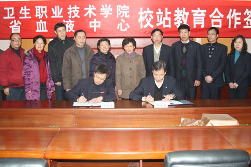 2011年1月17日下午,福建衛(wèi)生職業(yè)技術(shù)學(xué)院與福建省血液中心的校站合作教育簽約儀式在省血液中心隆重舉行。省血液中心郭永建主任、吳建忠書(shū)記、林青副主任,我院黨委嚴(yán)肅書(shū)記、廖偉堅(jiān)副院長(zhǎng)、魏立娜副院長(zhǎng)等領(lǐng)導(dǎo)出席了簽約儀式。簽約儀式由魏立娜副院長(zhǎng)主持。