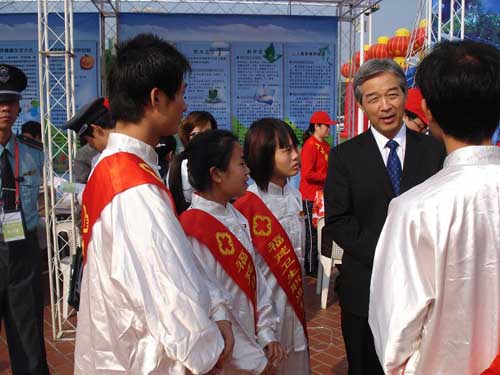 在健康博覽會上,我院4名青年志愿者登臺獻上精彩的二十四式太極拳表演,為廣大市民推廣科學健身方法,促進群眾健身技能的提高?;顒蝇F(xiàn)場,中國工程院院士、中華預防醫(yī)學會王隴德會長與我院青年志愿者親切交談,詳細詢問我院學生課余活動開展情況,并鼓勵志愿者積極開展群體性科學健身活動。(院團委)