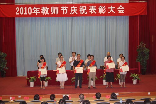 大會在雄壯的國歌聲中開始,季曉林副院長宣讀“2009~2010學(xué)年榮獲上級和學(xué)院表彰的教職工集體和個人名單,黃開良副院長宣讀獲教齡男滿30周年、女滿25周年教師名單,隨后,院領(lǐng)導(dǎo)為首屆“師德標(biāo)兵”、從事教育工作男滿30周年女滿25周年的教師、院青年教師教學(xué)競賽獲獎教師及院級教學(xué)名師頒獎。
