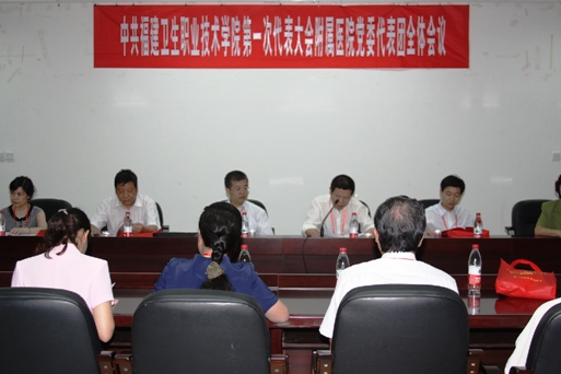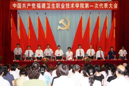 經(jīng)省衛(wèi)生廳黨組和省委教育工委批準,中國共產(chǎn)黨福建衛(wèi)生職業(yè)技術學院第一次代表大會于2010年7月4日隆重召開。大會認真審議并通過了嚴肅同志代表學院黨委所作的黨委工作報告和陳雄副書記代表學院紀委所作的紀委工作報告,選舉產(chǎn)生了中共福建衛(wèi)生職業(yè)技術學院第一屆委員會和紀律檢查委員會。省委教育工委常務副書記、省教育廳黨組副書記、副廳長鄭傳芳,省衛(wèi)生廳副廳長陳秋立,省委教育工委組織部部長馬玉良、副部長詹松青、副調(diào)研員郭林、副處級組織員陳洪堯,省衛(wèi)生廳廳直機關黨委專職副書記吳仕理等上級領導親臨指導,學院老領導、各民主黨派代表受邀列席了會議。