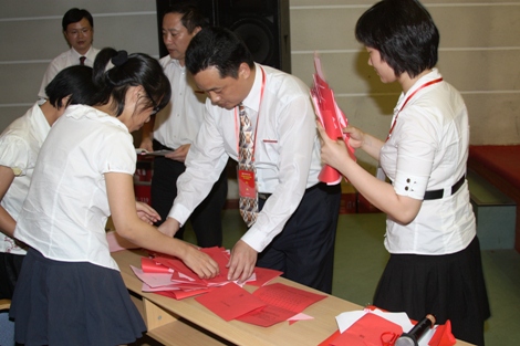 經(jīng)現(xiàn)場清點代表人數(shù)后,大會向每位正式代表分發(fā)了選票。代表們認真填寫選票,依次投票。整個投票過程組織嚴密,秩序井然。經(jīng)統(tǒng)計,總監(jiān)票人林崧同志向大會宣布了每位候選人的得票情況。根據(jù)大會選舉辦法,嚴肅、李紅、陳雄、林春明、季曉林、黃開良、廖偉堅、魏立娜等8位同志當選為中共福建衛(wèi)生職業(yè)技術學院第一屆委員會委員,楊誠、陳雄、陳榕珍、鄭向紅、董榕等5位同志當選為中共福建衛(wèi)生職業(yè)技術學院紀律檢查委員會委員。