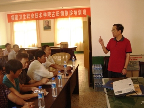 2010年7月23~27日,根據(jù)省委教育工委的統(tǒng)一安排,福建衛(wèi)生職業(yè)技術(shù)學(xué)院黨委嚴(yán)肅書記帶領(lǐng)教務(wù)處唐榮耀處長和附屬省級(jí)機(jī)關(guān)醫(yī)院急診科陳信西主任到革命老區(qū)上杭縣古田鎮(zhèn)衛(wèi)生院開展專題講座并簽訂教育培訓(xùn)合作協(xié)議。