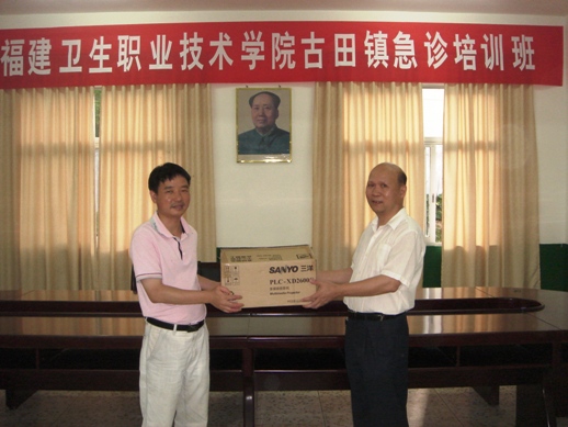5、發(fā)揮作為省基層衛(wèi)生技術(shù)人員培訓(xùn)集團(tuán)牽頭單位的作用,合理整合醫(yī)療資源,爭取為古田鎮(zhèn)衛(wèi)生院提供部分急需的醫(yī)療、教學(xué)設(shè)備和技術(shù)服務(wù)。首批贈(zèng)送教學(xué)培訓(xùn)用投影儀壹臺(tái)。
