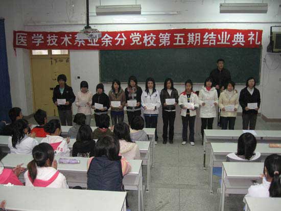 2010年2月2日下午,醫(yī)學(xué)技術(shù)系第五期業(yè)余分黨校結(jié)業(yè)典禮在系部第二階梯教室隆重舉行。結(jié)業(yè)典禮由系團(tuán)總支副書(shū)記黃小芳老師主持,系黨總支副書(shū)記洪聿榮老師和全體培訓(xùn)班學(xué)員出席了結(jié)業(yè)典禮。