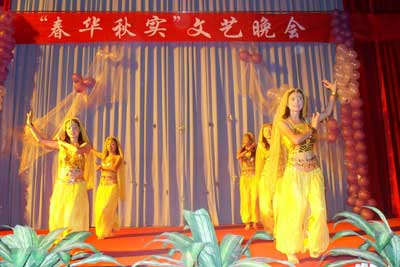 一曲青春動(dòng)感的健美操《The power》拉開了晚會(huì)的序幕,整場(chǎng)匯演,形式豐富多樣,有活力時(shí)尚的勁舞《Hush Hush》、《鈴鐺舞》、《蛇舞》、有富有民族氣息的舞蹈《新疆姑娘》、《六月茉莉》、有充滿古典韻味的古箏獨(dú)奏《漁舟唱晚》、有神秘莫測(cè)的情景魔術(shù)表演《新店開張》、還有相聲《音樂旅行社》、話劇《唐伯虎點(diǎn)秋香》等詼諧幽默的語言類節(jié)目。院團(tuán)委王燁老師的優(yōu)美歌聲、師生的互動(dòng)游戲、謝濤書記的精彩講話并切下嵌有“愛心”圖案的蛋糕將匯演推向高潮。最后,在藝校嘉賓的一首《凌晨3點(diǎn)鐘》沁人心霏的歌聲中,結(jié)束了本次的文藝匯演。