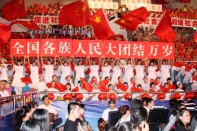 9月28日晚,由省委、省政府和福州市委、市政府共同舉辦的“祖國萬歲 海西騰飛”——福建省暨福州市慶祝新中國成立60周年大型文藝晚會,在省體育館隆重舉行。省委書記盧展工,省長黃小晶等領(lǐng)導(dǎo)與社會各界群眾8000多人歡聚一堂,共慶佳節(jié)。