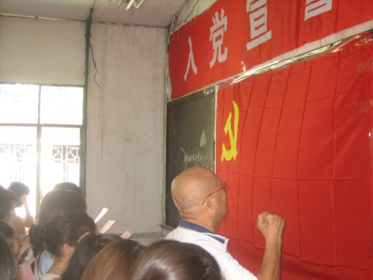 139名新黨員面向鮮紅的黨旗,舉起右手莊嚴(yán)地宣誓:“我志愿加入中國共產(chǎn)黨,擁護(hù)黨的綱領(lǐng),遵守黨的章程……”,發(fā)出了誓為共產(chǎn)主義奮斗終身的誓言,這是新黨員加入黨組織的必經(jīng)程序,也是新黨員向黨表明心聲和接受教育的一次極好機(jī)會(huì)。