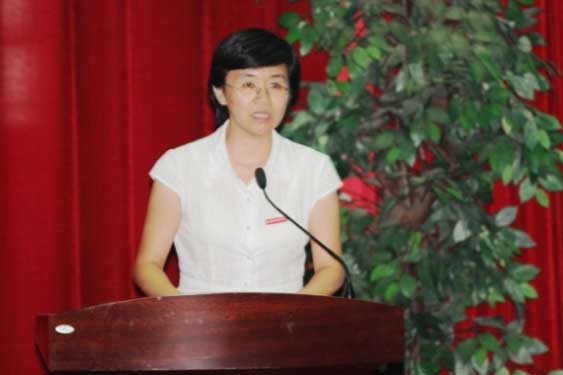 受表彰教師代表謝濤老師在會(huì)上發(fā)言。