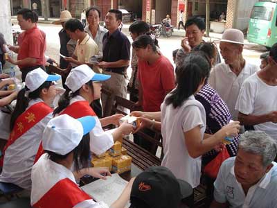 為了貫徹和實施團中央有關(guān)大學(xué)生“三下鄉(xiāng)”活動的精神,我系于7月4日至7月6日前往福州市閩侯縣洋里鄉(xiāng)開展以“真情送服務(wù),實踐促成長”為主題的“三下鄉(xiāng)”活動。本次活動得到閩侯縣團委、洋里鄉(xiāng)政府的支持和指導(dǎo),并得到福州海王福藥制藥有限公司、福建省東南醫(yī)藥有限公司友情贊助?!叭锣l(xiāng)”服務(wù)隊由何烜、唐小巒和鄭瑋老師和10名團干部組成。本次“三下鄉(xiāng)”活動閩侯縣電視臺全程跟蹤報道。