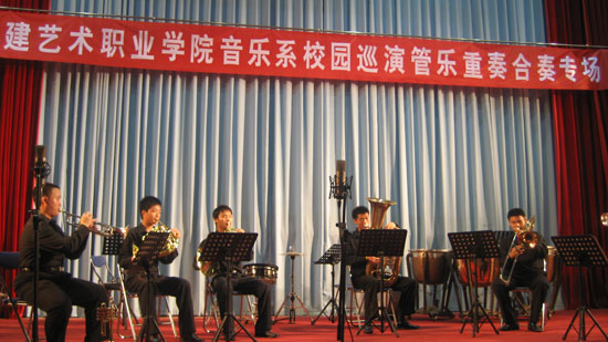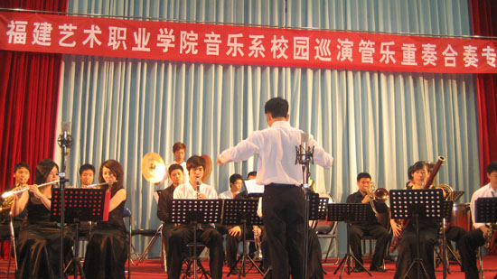 為豐富學(xué)生課余文化生活,營(yíng)造積極向上、和諧的校園文化氛圍,6月12日晚,院團(tuán)委邀請(qǐng)福建藝術(shù)職業(yè)學(xué)院音樂系校園巡演隊(duì)到我院舉辦《管樂重奏合奏》專場(chǎng)音樂會(huì)。