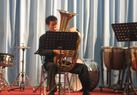 音樂會(huì)上高潮迭起,氣氛濃烈,《演藝者》、《拾荒者》、《康康舞曲》等十余首國(guó)內(nèi)外著名的管樂重奏合奏樂曲深深打動(dòng)了聽眾,贏得了陣陣掌聲。(院團(tuán)委)