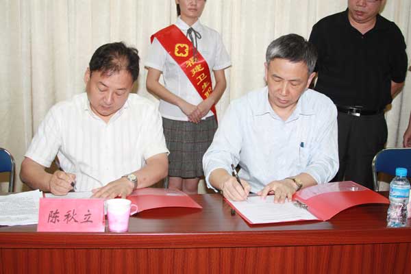 會議首先推選了陳秋立為培訓集團理事會理事長、唐魯榕等12人為培訓集團理事會副理事長、廖偉堅等2人為培訓集團理事會秘書長、福建省教育廳等37個單位為培訓集團常務理事單位;其次,理事長與陳國忠等3人進行了現(xiàn)場簽約,并頒發(fā)了集團理事會副理事長、正副秘書長聘書、集團成員證書;最后,省衛(wèi)生廳副廳長陳秋立同志和福建衛(wèi)生職業(yè)技術(shù)學院黨委書記嚴肅同志共同為培訓集團和培訓基地揭牌。