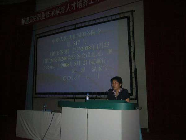 2008年6月17日下午,我系邀請了省衛(wèi)生廳醫(yī)政處護(hù)理專干吳涵珍主任,針對剛剛發(fā)布實(shí)施的《中華人民共和國護(hù)士管理?xiàng)l例》,向我系廣大師生做了一次專題講座。