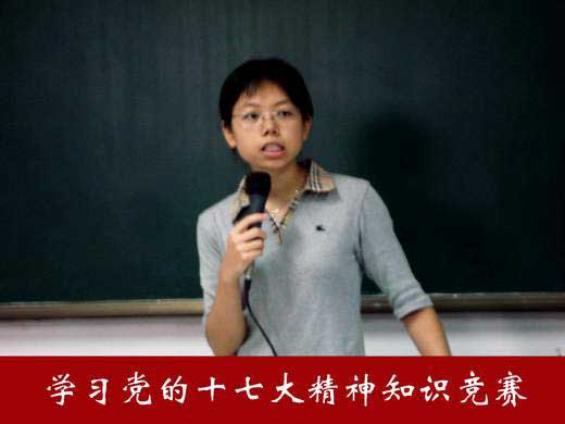 通過競賽讓同學(xué)們對黨的十七大精神及新黨章有了更深刻的認(rèn)識。此次知識競賽活動的順利進(jìn)行,是對我系學(xué)生一次黨的基本知識教育,更是對全系學(xué)生學(xué)習(xí)十七大精神的一次鞭策和鼓舞。(藥學(xué)系)
