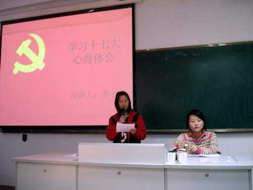 系優(yōu)秀學生代表宋建冬等同學就學習體會并聯(lián)系實際進行了發(fā)言。對胡錦濤總書記在十七大開幕式上所作重要報告,會議各階段主要工作內(nèi)容以及十七大閉幕式談自己的感受和體會。