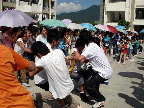 13:30,全系學(xué)生集合完畢,歐書記作重要講話:為加強(qiáng)系部各班級(jí)同學(xué)之間的團(tuán)結(jié)和友誼,增強(qiáng)各班級(jí)的凝聚力和向心力,我系舉行“迎奧運(yùn)、慶國慶拔河比賽”。拔河比賽是一項(xiàng)很好全民健身運(yùn)動(dòng),它能夠充分體現(xiàn)團(tuán)隊(duì)精神。我希望參賽的各班級(jí)本著“友誼第一,比賽第二”的精神,賽出風(fēng)格,賽出友誼,賽出團(tuán)結(jié)和齊心協(xié)力的拼搏精神,同時(shí)希望同學(xué)們?cè)诨顒?dòng)期間做好安全工作。