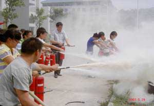 6.為促進商業(yè)網(wǎng)點、食堂全體職工對消防知識的了解,提高消防安全意識,保護人身安全,將損失減少到最低限度, 2007年5月15日下午,保衛(wèi)處組織進行滅火器使用培訓(xùn)和現(xiàn)場油盆滅火演練,共使用滅火器70個,參加人數(shù)近百人。