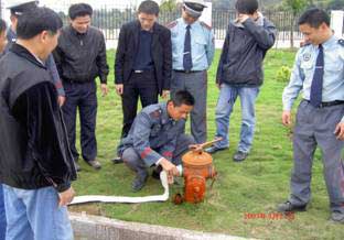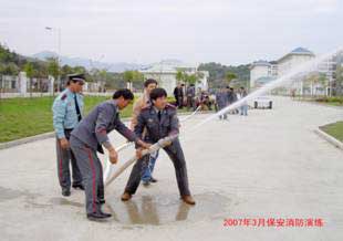 3.2007年3月27日保衛(wèi)處組織全體保安員和安防人員舉行油盆滅火演練和消防水帶操作演練。