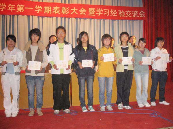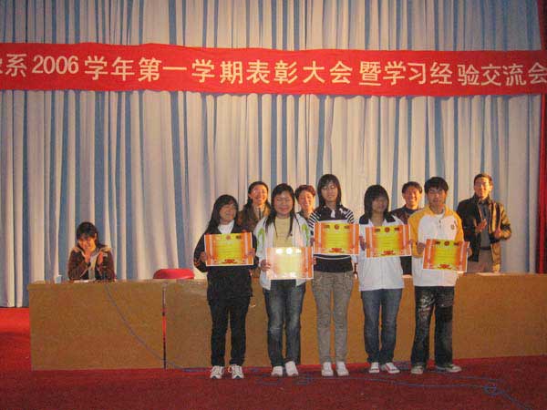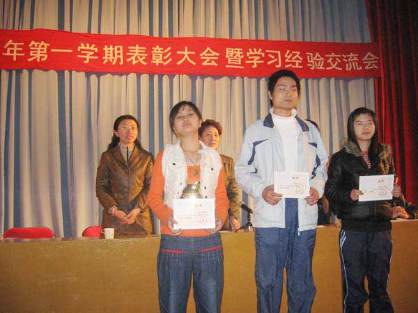 本次表彰大會表彰了2006學(xué)年第一學(xué)期榮獲各級各類榮譽(yù)的三好生、優(yōu)秀學(xué)生干部和衛(wèi)模宿舍。其中05級檢301班7604宿舍等5個宿舍榮獲“衛(wèi)生模范宿舍”稱號;高職高專班涂菊蘭等8位同學(xué)獲“院三好生”稱號、林建珍等13位同學(xué)獲“系三好生”稱號、黃增銘等1位同學(xué)獲“系優(yōu)秀學(xué)生干部”稱號、陳鳳珍等15位同學(xué)獲四等獎學(xué)金;五年專和中專班張陳蓮等32位同學(xué)獲“院三好生”稱號、陳蘭蘭等9位同學(xué)獲“系優(yōu)秀學(xué)生干部”稱號、黃祎穎等51位同學(xué)獲“系三好生”稱號、葉曉娟等17位同學(xué)獲“系優(yōu)秀學(xué)生干部”稱號、黃曉丹等82位同學(xué)獲三等獎學(xué)金、陳曉霞等12位同學(xué)獲單項獎。會上陳婉麗等6位品學(xué)兼優(yōu)的同學(xué)介紹了學(xué)習(xí)經(jīng)驗,受到了同學(xué)們的好評。