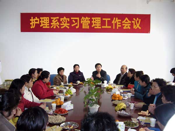 2007年1月26日下午福建衛(wèi)生職業(yè)技術(shù)學(xué)院護(hù)理系在系會(huì)議室召開了2007年度實(shí)習(xí)管理工作座談會(huì)。參加會(huì)議的有福建省立醫(yī)院、福建醫(yī)科大學(xué)附屬第一醫(yī)院、福建醫(yī)科大學(xué)附屬協(xié)和醫(yī)院等10余家醫(yī)院的護(hù)理部主任和臺(tái)江區(qū)衛(wèi)生局、鼓樓區(qū)衛(wèi)生局、晉安區(qū)衛(wèi)生局的相關(guān)負(fù)責(zé)人。副院長廖偉堅(jiān)、教務(wù)處處長唐榮耀應(yīng)邀出席了會(huì)議。護(hù)理系主任劉登蕉、黨總支書記謝濤、副主任劉珍紅也出席了會(huì)議。