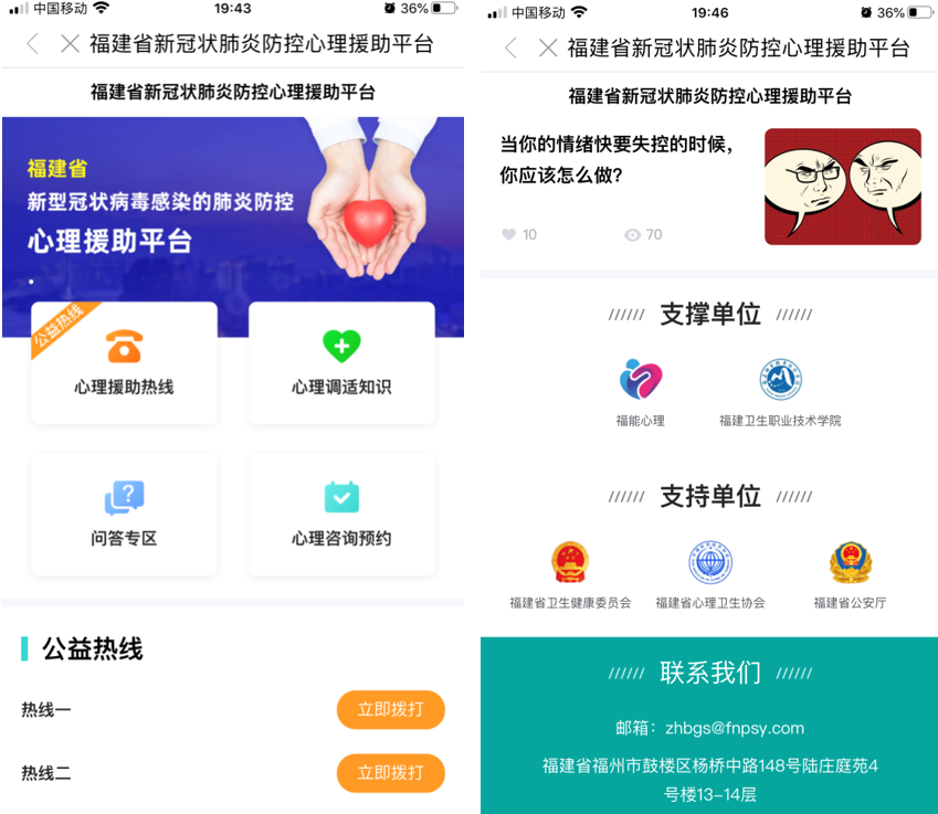 目前,該平臺也加入了由本報牽頭,福建日報、東南網(wǎng)、新福建等共同倡議成立的心理熱線聯(lián)盟。
