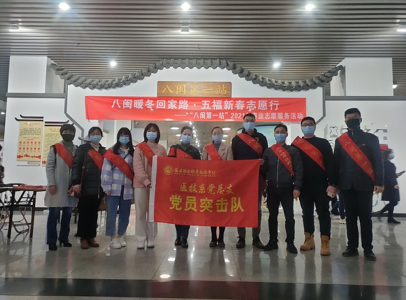 近日,福建衛(wèi)生職業(yè)技術(shù)學(xué)院醫(yī)學(xué)技術(shù)系黨總支組織9名教師黨員前往福州火車站(北廣場),參加由“八閩第一站”主辦的“八閩暖冬回家路·五福新春志愿行”2021 年春運(yùn)志愿服務(wù)活動,發(fā)揮黨員的先鋒模范作用,助力春運(yùn),筑牢疫情防控防線。