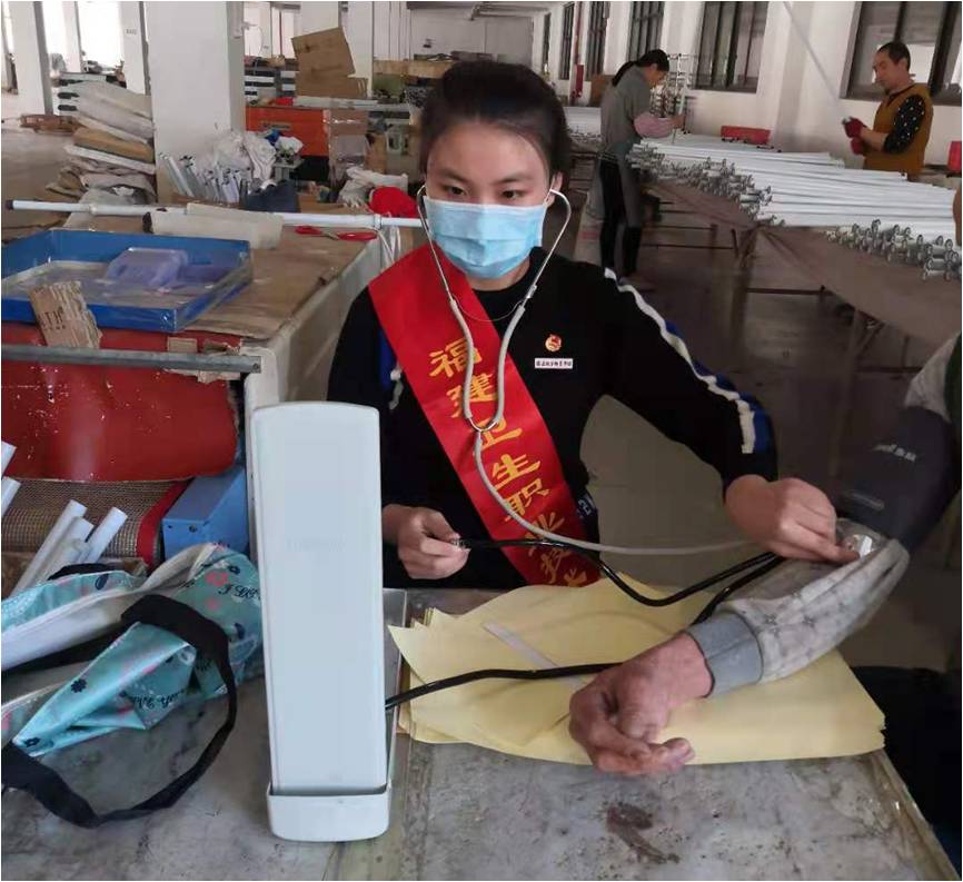 王慧參加志愿活動(dòng)為工人們測(cè)量血壓。受訪者供圖