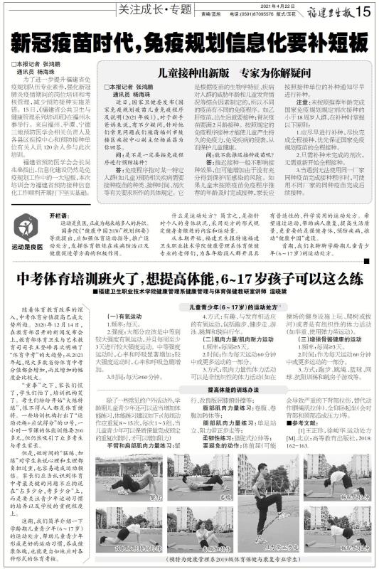 從本期開始,福建衛(wèi)生報特邀福建衛(wèi)生職業(yè)技術(shù)學院健康管理系體育保健專業(yè)的老師們,為各年齡段人群開具具有普適性的、科學實用的運動處方。希望通過運動,幫助病人康復,提高生活質(zhì)量,更重要的是強健身體,預防疾病,推動“健康中國”建設。