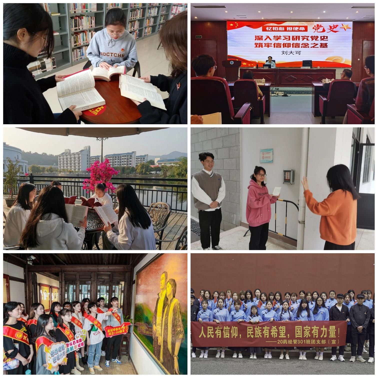 個(gè)人自學(xué)。各團(tuán)支部推薦學(xué)習(xí)資料,組織同學(xué)們到校圖書館借閱黨的理論、黨的綱領(lǐng)、黨的章程等相關(guān)書籍,認(rèn)真學(xué)習(xí)黨史,了解黨情,在重溫初心中厚植人民情懷、在咀嚼苦難中堅(jiān)定人生信仰、在偉人事跡中樹(shù)立人生榜樣。
