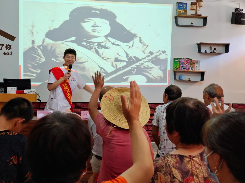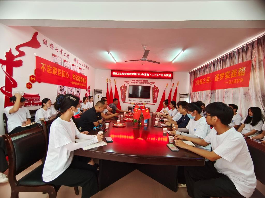2022年暑期,24位來自不同醫(yī)學(xué)專業(yè)的福建衛(wèi)職院習(xí)近平新時代中國特色社會主義思想讀書社社員,在馬克思主義學(xué)院熊美蘭、羅蕓、王康和醫(yī)學(xué)院徐麗鶯老師的指導(dǎo)下組建“馬上逐夢”實踐隊,開展“不忘跟黨初心 牢記青春使命”為主題的“三下鄉(xiāng)”思政課社會實踐。本次思政實踐教學(xué)的“主會場”設(shè)在閩侯縣新坡村,“分會場”設(shè)在各隊員的家鄉(xiāng)?;顒印艾F(xiàn)場”為學(xué)生提供“探”“訪”“宣”“診”等思政課實踐教學(xué)“大餐”。