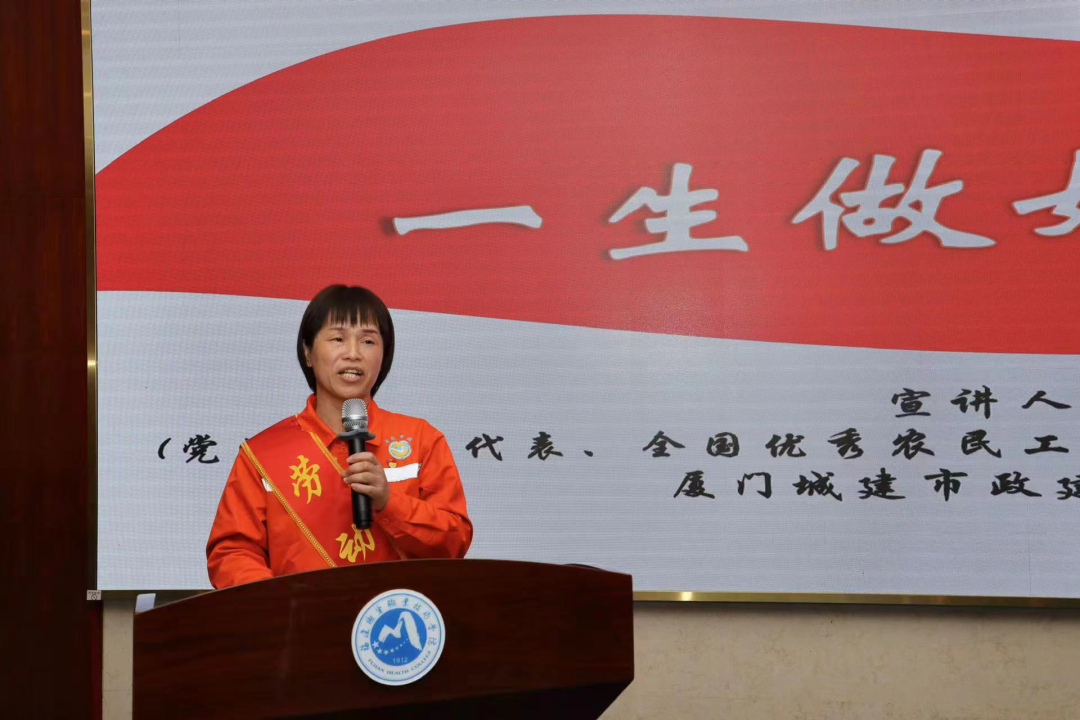 活動現(xiàn)場,廈門市總工會副主席、廈門大學附屬第一醫(yī)院普外科護士長、全國先進工作者、全國五一勞動獎章獲得者席雅君,廈門城建市政建設管理有限公司嵩嶼市政管理站環(huán)衛(wèi)組長、黨的二十大代表、全國優(yōu)秀農(nóng)民工、全國三八紅旗手、福建省勞動模范蔡月英,廈門醫(yī)學院臨床醫(yī)學系副教授、福建省五一勞動獎章獲得者、福建省五一巾幗標兵、福建省優(yōu)秀教師林虹三位勞模圍繞自身工作實際向師生們介紹分享了自身的工作經(jīng)歷以及所見所聞、所思所想、所感所悟等。