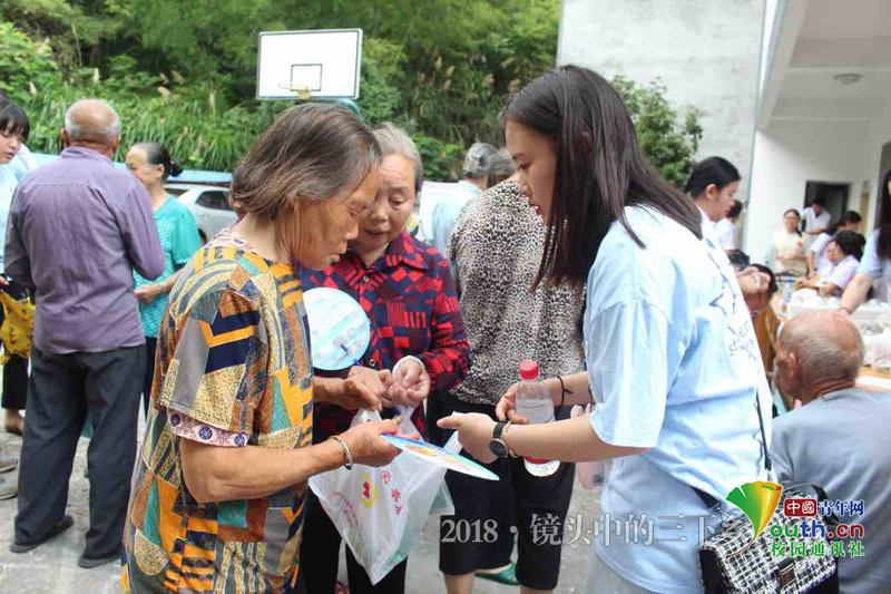 成員們正在為老人們分發(fā)常用藥品,老人們都很是感激。中國青年網通訊員 吳雪兒 攝