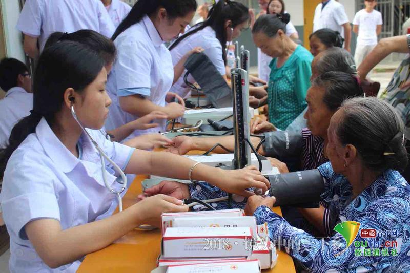 老人們看見熱心的成員們都紛紛上前,請他們測量血壓。中國青年網通訊員 吳雪兒 攝