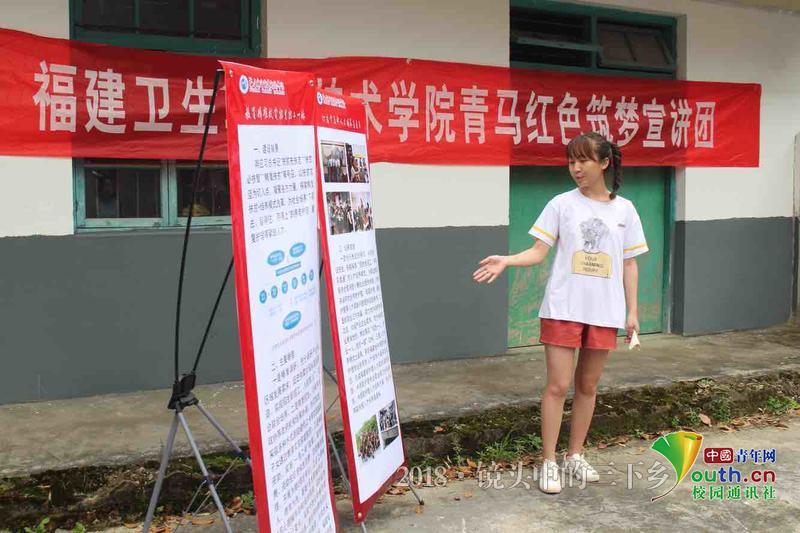 宣講團成員陳雨婷同學正在為嶺腰村村民們宣講扶貧思想。中國青年網通訊員 吳雪兒 攝