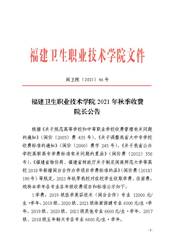 福建衛(wèi)生職業(yè)技術(shù)學(xué)院2021年秋季收費(fèi)院長公告