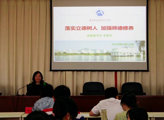 6月18日下午,我院舉辦師德師風(fēng)專題講座。學(xué)院黨委副書記李美華應(yīng)邀作專題講座,近年新進(jìn)教師及專任輔導(dǎo)員代表共50多人聆聽了講座。