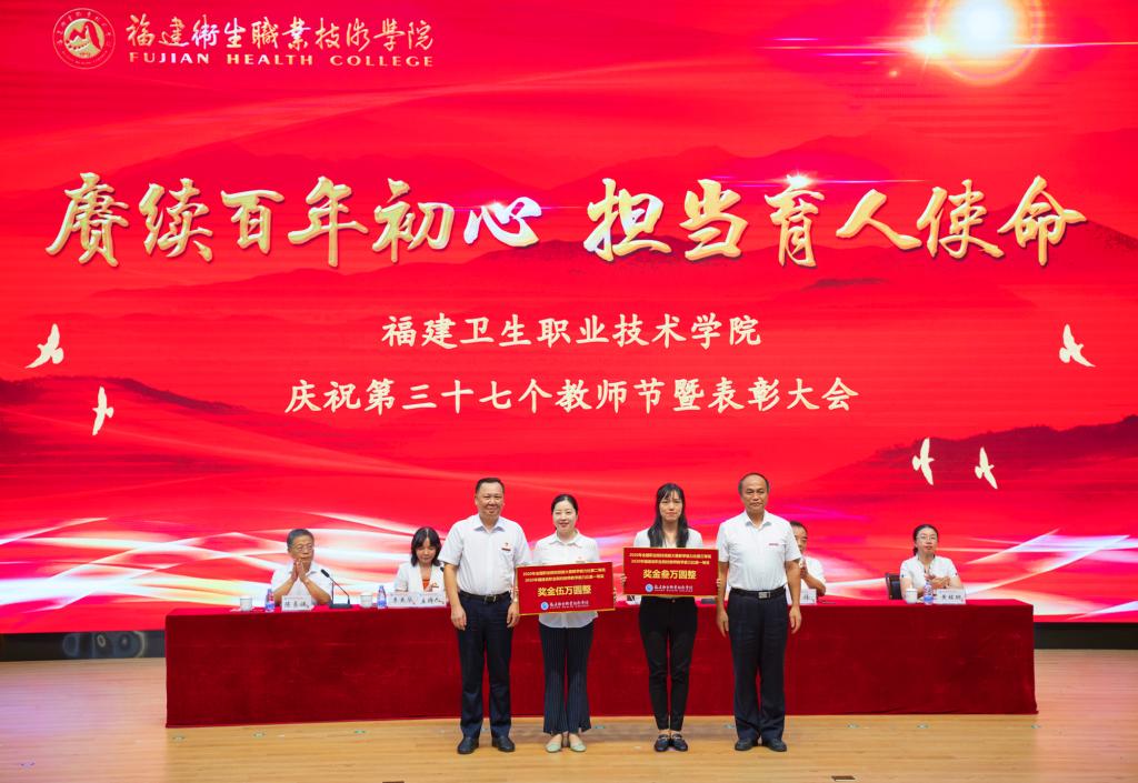 9月9日下午,我校在學(xué)術(shù)報告廳舉行慶祝第37個教師節(jié)暨表彰大會,表彰獎勵在教學(xué)、管理等工作中做出突出貢獻的教職醫(yī)護員工和臨床兼職教師。校黨委書記曾武祈、校長許能鋒、副書記李美華、紀(jì)委書記游鋒、副校長陳貞健和黃銘珊出席表彰大會,為廣大教職工及退休老同志送上節(jié)日問候和美好祝福。大會由李美華主持。