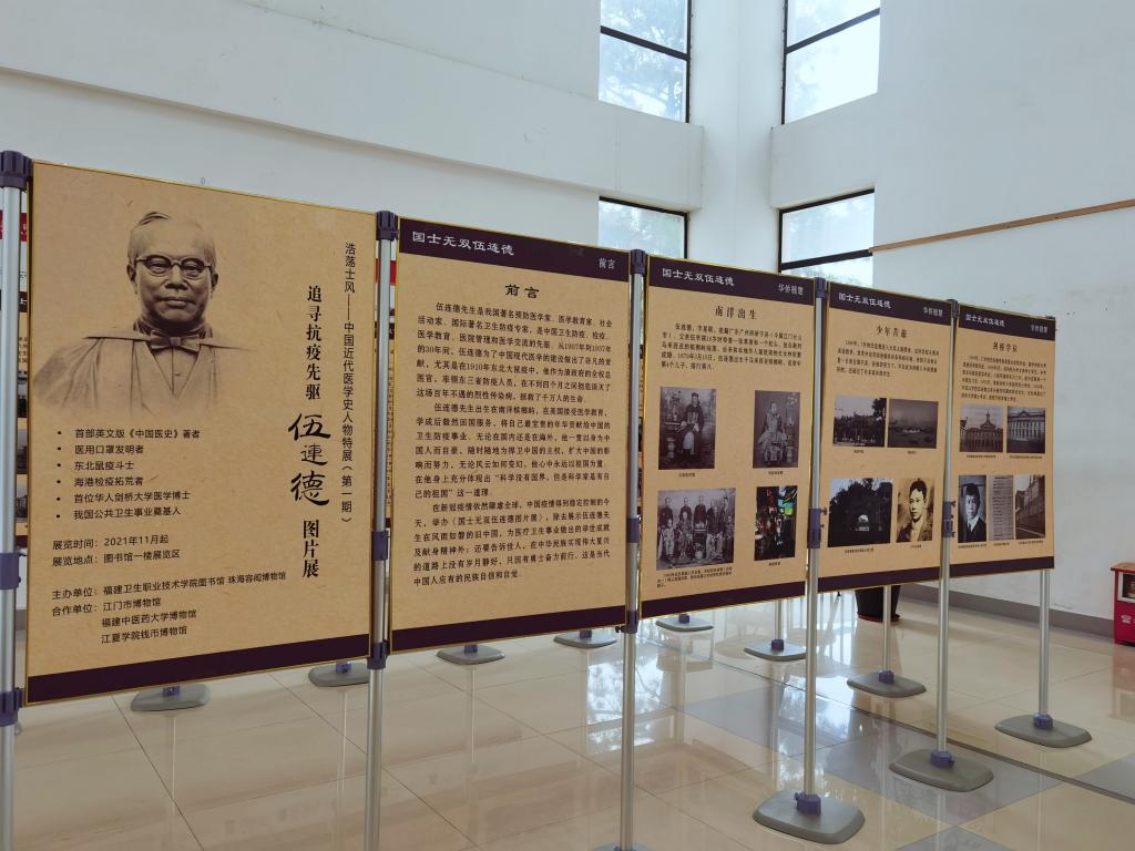 11月19日,我校圖書館聯(lián)合福建中醫(yī)藥大學(xué)博物館、江夏學(xué)院錢幣博物館、珠海市香洲區(qū)容閎博物館、江門市博物館舉辦“浩蕩士風(fēng)——中國近代醫(yī)學(xué)史人物特展:追尋抗疫先驅(qū)伍連德”圖片展。