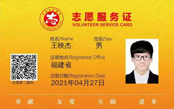 王映杰具有強(qiáng)烈的社會責(zé)任意識和奉獻(xiàn)意識,積極參與紅十字應(yīng)急救援、人道救助、救護(hù)培訓(xùn)活動,在社會實踐中提升自身志愿服務(wù)本領(lǐng)。2020年1月,他加入安溪縣紅十字會義工服務(wù)團(tuán),現(xiàn)任服務(wù)團(tuán)文明宣導(dǎo)員。2020年10月,他加入學(xué)校紅十字會學(xué)生分會,積極參加各類志愿服務(wù)活動,配合開展急救技能培訓(xùn)、考試。在 “無償血車進(jìn)?!濒摺叭热I(xiàn)”、“九九公益日”等活動中,倡導(dǎo)無私奉獻(xiàn)、救死扶傷的崇高精神,宣傳紅十字人道公益項目品牌。在開學(xué)季,他積極投入校園防疫工作,參與新生體檢復(fù)檢工作及四輪全校全員核酸檢測,服務(wù)全校師生28000人次。