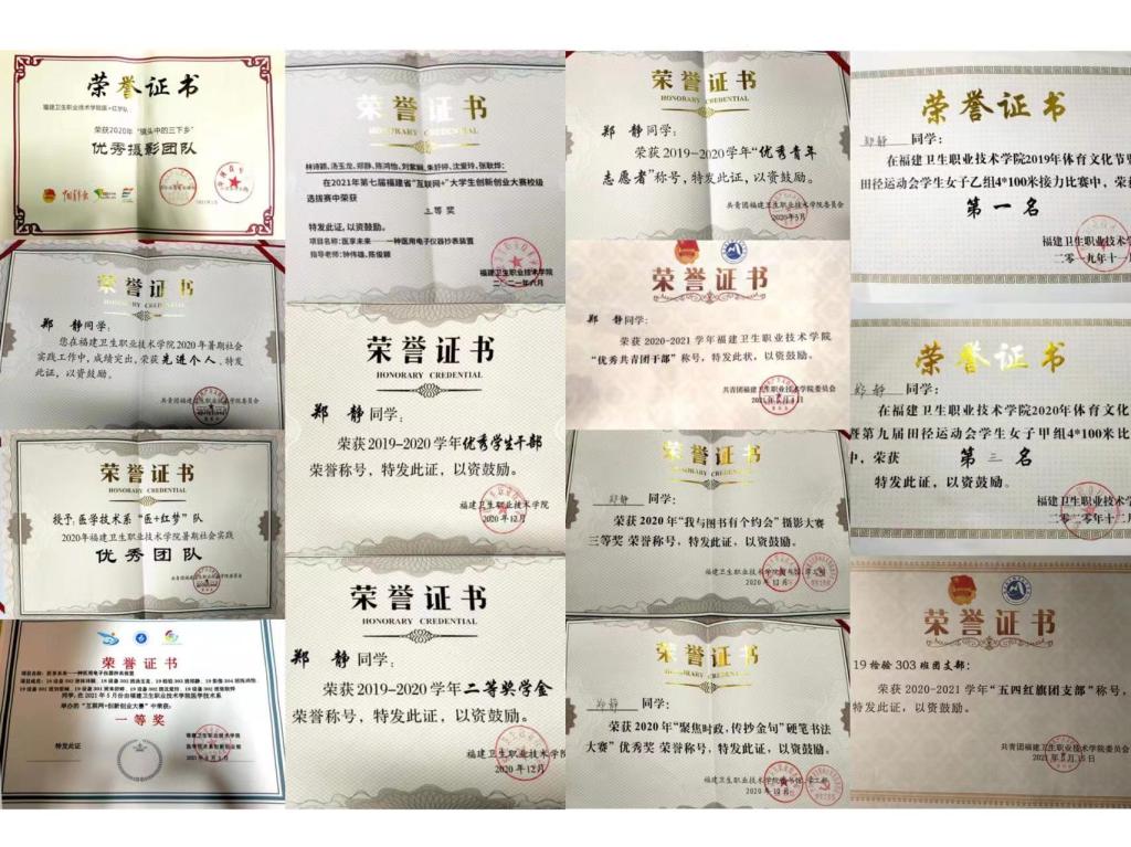 她和團隊先后獲得校級第四屆最熱公益校園益動活動“優(yōu)秀助力班級”、校級“五四紅旗團支部”、校級“暑期社會實踐優(yōu)秀團隊”、中國青年網(wǎng)“優(yōu)秀攝影團隊”、“趁年輕,去基層”2020全國大學(xué)生“千校千項”網(wǎng)絡(luò)展示活動“最美團隊”等榮譽稱號。個人獲?!皟?yōu)秀青年志愿者”、“優(yōu)秀學(xué)生干部”、“優(yōu)秀共青團干部”、“暑期社會實踐先進個人”以及“趁年輕,去基層”2020全國大學(xué)生“千校千項”網(wǎng)絡(luò)展示活動“青年基層觀察員”榮譽稱號。