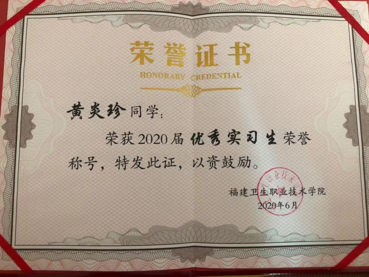 “堅定目標,不退縮,不放棄!”這是黃炎珍踐行的勵志名言。完成在校的理論學習之后,黃炎珍憑借著自己的努力進入福建醫(yī)科大學附屬第一醫(yī)院實習,并擔任實習組長。實習期間,她認真仔細、任勞任怨,不斷提升自己的專業(yè)能力,在實踐中總結經驗,獲得患者與帶教老師的一致好評。