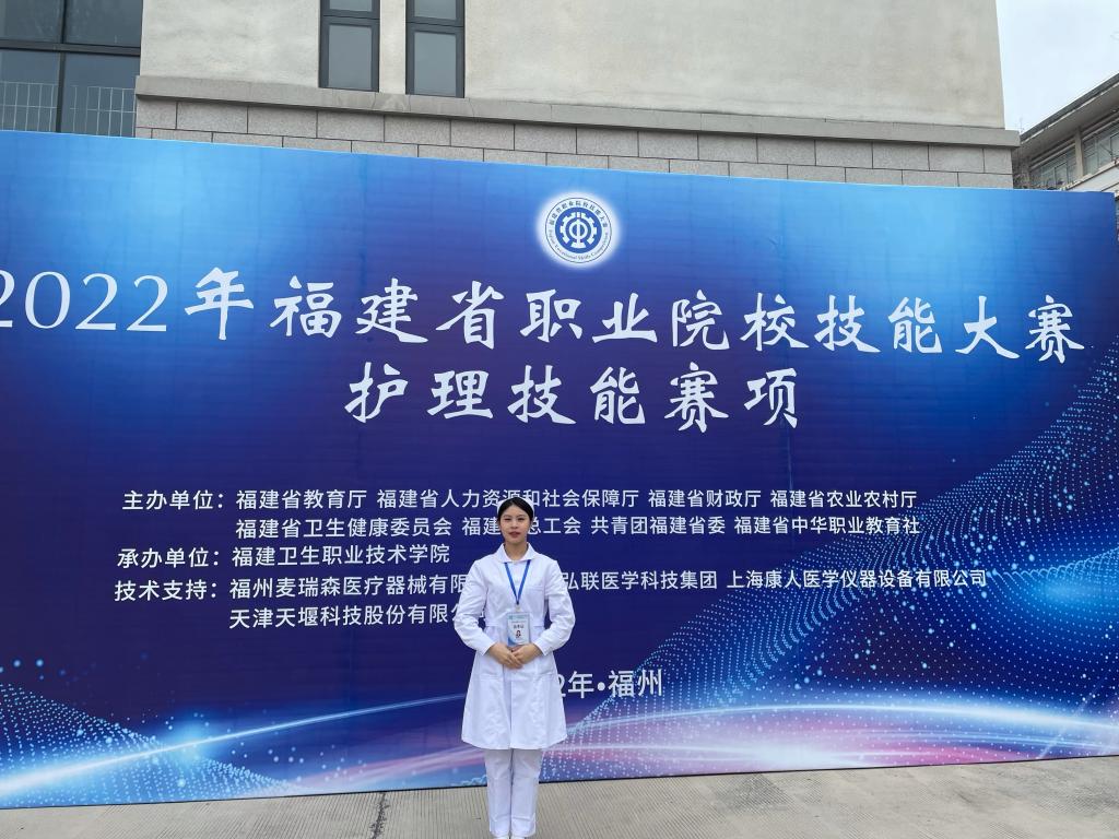 除了優(yōu)異的學習成績,黃炎珍還四次代表學校參加省級護理技能競賽。在高手云集的賽場,黃炎珍一次次挑戰(zhàn)自我、超越自我。在備戰(zhàn)2022年省賽的一個月里,她只休息了2天,培訓老師列出的計劃表是,每天從早上7點到晚上10點。黃炎珍經常給自己“加碼”,學到凌晨1~2點。最終,她憑借日常的刻苦訓練和賽場中“魔鬼般”的細節(jié),以超越第二名2分的“斷層式”領先,穩(wěn)穩(wěn)奪得一等獎第一名。